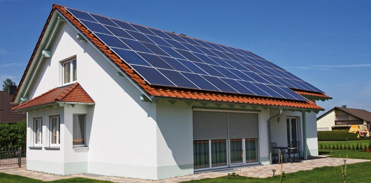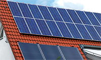 Flachdach Hier werden mittels einer Aufständerung die Solarmodule schräg im optimalen Winkel montiert. Aber auch eine flexible Verlegung in Bahnen – dachintegriert – ist möglich. |
